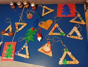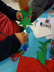 Joulun askartelu tuotokset. Ohjaajat yhdessä asukkaiden kanssa valmistautuvat jouluun.