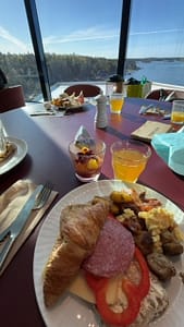 Laivaan saavuttua syötiin herkullinen ja kattava aamupala. Aamupalla oli tarjolla kaikkea herkullista, kaikille löytyi jotain herkullista syötävää.