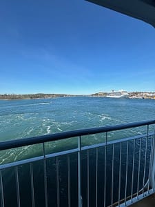 Aurinko paistoi ja sää oli mitä mahtavin. Odotimme kannella laivan vaihtoa, ja nautittiin auringon paisteesta ja sen tuomasta lämmöstä.