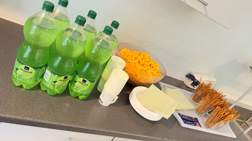 Tarjolla oli juomaa ja pientä naposteltava.