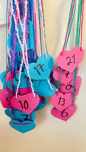 Pöydät koristettu. Sydämet tehty valmiiksi rusettitansia varten.