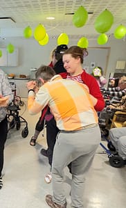 Halukkaat saapuivat juhlasaliin. Tanssit alkoivat. Kaikki osallistuivat innokkaasti.