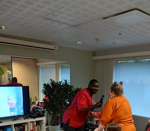 Perjantaina asukkaalla ollut syntymäpäivää. Itse tehty kakku oli hyvänmakuinen. Tanssittu ja laulettu yhdessä yhteistiloissa.