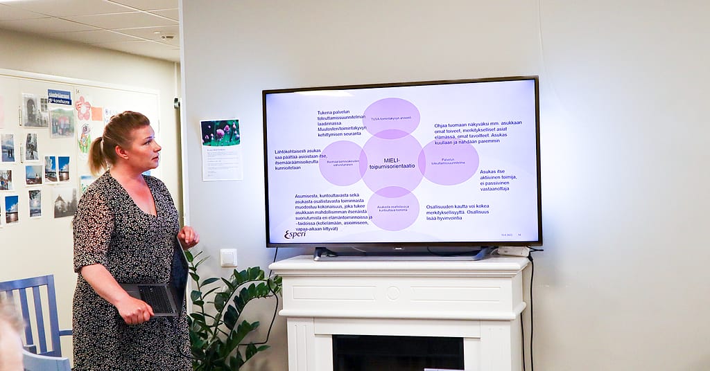 ”Mieli-toipumisorientaatio on palvelulupaus Esperin Mielenterveyspalveluiden asukkaille. Kesällä järjestetty tilaisuus oli ensimmäinen laatuaan, mutta syksyllä tulemme mahdollisesti järjestämään vastaavia myös muissa mielenterveyspalveluidemme kodeissa“, sanoo palveluasiantuntija Jaana Rytilahti.