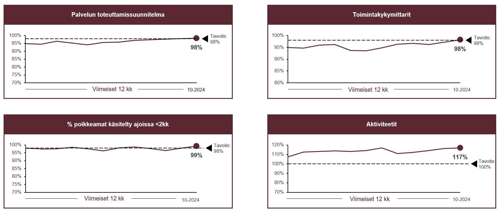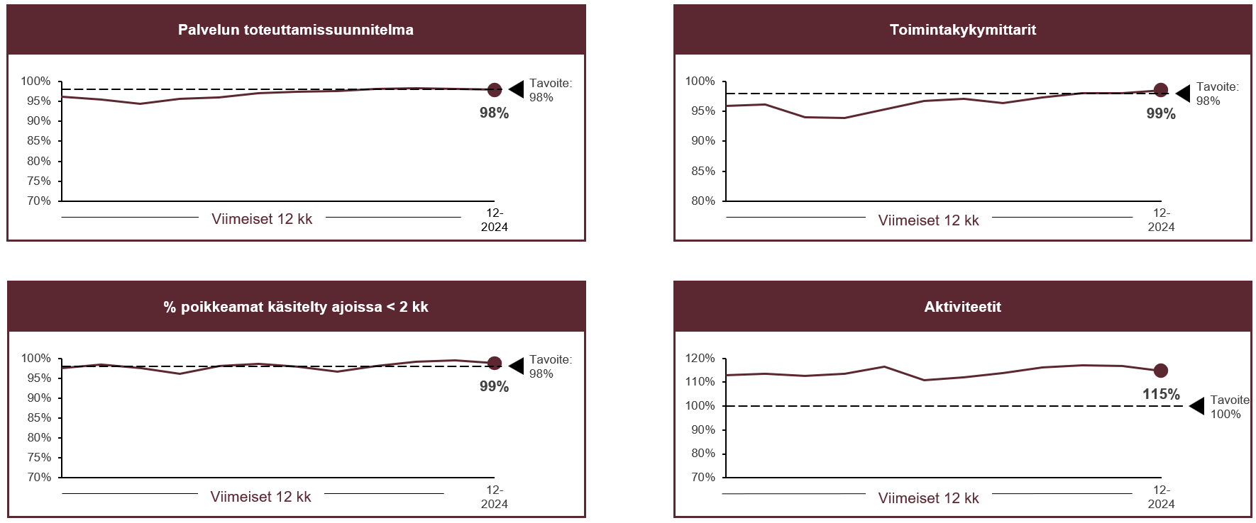 - Katso täältä vuoden 2024 palvelun toteuttamissuunnitelmien, aktiviteettien sekä toimintakykymittarien toteutumiset.