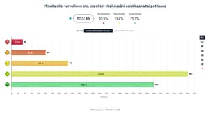 Teemme kahdesti vuodessa myös turvallisuuskulttuurikyselyn henkilöstölle, jonka tulosten mukaan ohjaamme kehitystyötä. Mittasimme sen ensimmäisen kerran joulu 2023 -tammikuussa 2024. Saimme mittauksessa henkilöstön Esperin NSS-luvuksi + 60 (asteikko -100- +100). Vastanneita tähän kyselyyn oli yli 2 500. Turvallisuusindeksi on parantunu, ollen viimeksi + 65.