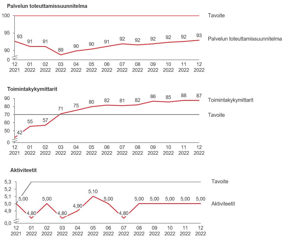 - Katso täältä vuoden 2022 palvelun toteuttamissuunnitelmien, aktiviteettien sekä toimintakykymittarien toteutumiset.
