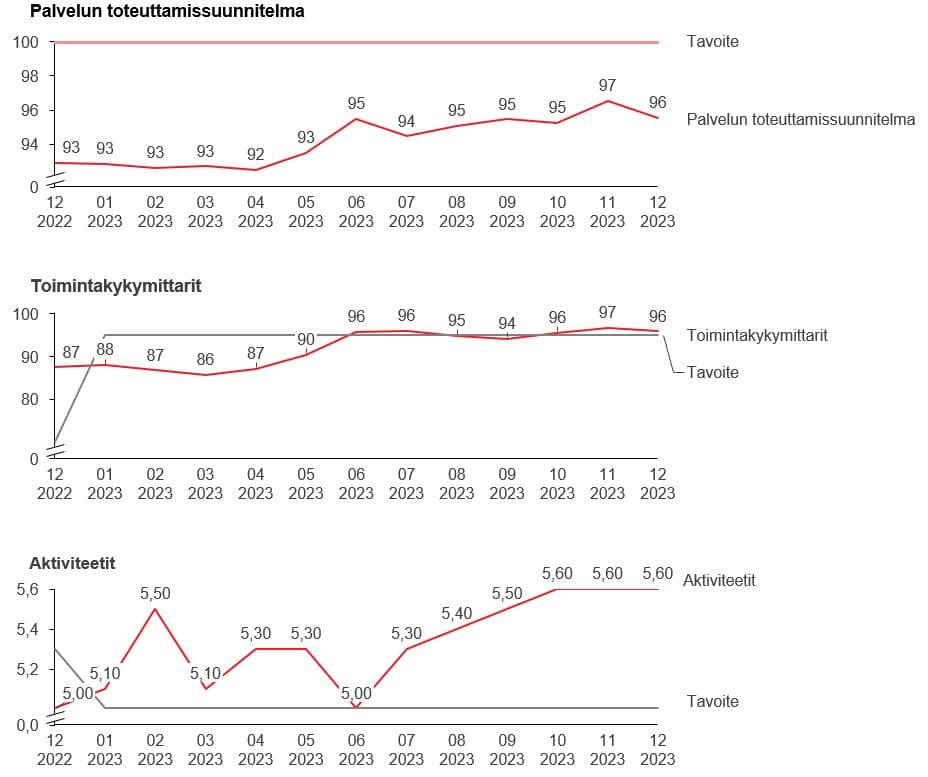 - Katso täältä vuoden 2023 palvelun toteuttamissuunnitelmien, aktiviteettien sekä toimintakykymittarien toteutumiset.