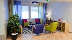 Asukkailla on käytössään oma huone sekä viihtyisät yhteistilat. Turvallisella ja isolla piha-alueella ulkoillaan ja pelaillaan ympäri vuoden. Koti sijaitsee Pukkimäen alueella, terveyskeskuksen ja muiden palveluiden läheisyydessä. Läheltä löytyy myös Kuhnamonrannan ulkoilureitit ja senioripuisto.
