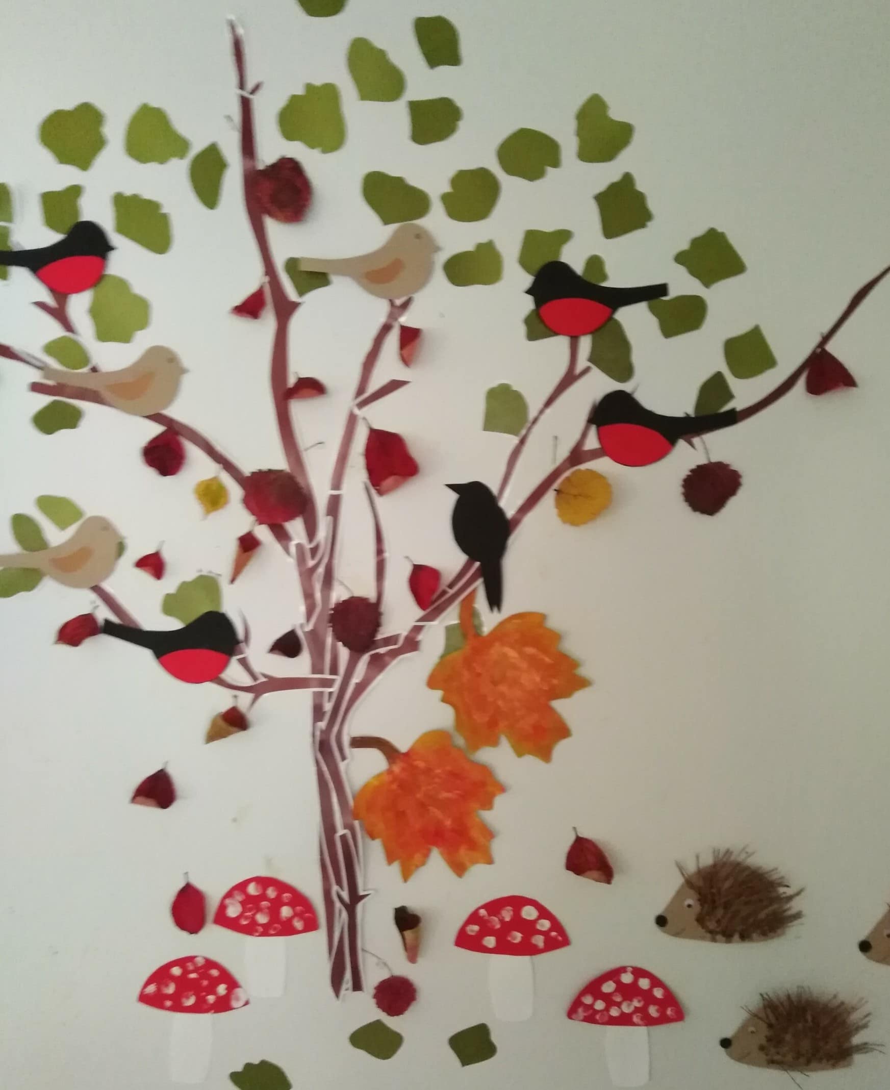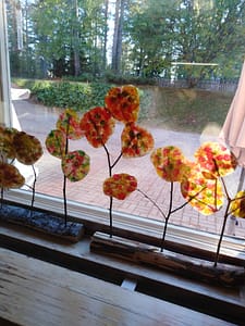 Vuodenaika siirtynyt syksyyn ja asukkaat ovat innostuneet askartelemaan. Vuodenaikapuu on saanut syksyn värit.