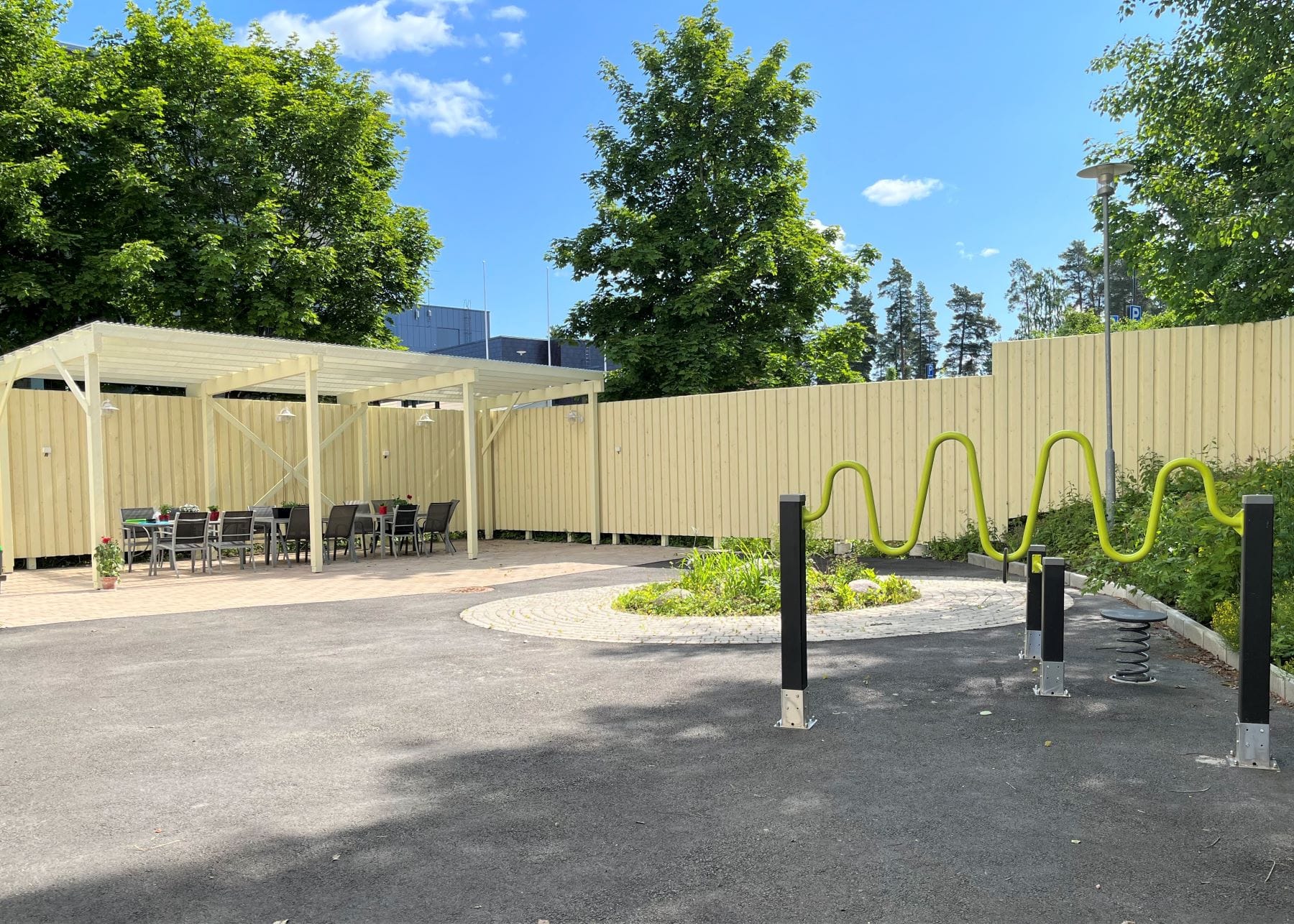Turvallisella piha-alueella ulkoillaan, pelaillaan ulkopelejä ja nautitaan yhteisolosta isolla terassilla ympäri vuoden. Läheinen luonto puolestaan tarjoaa mahdollisuuden monipuoliseen liikkumiseen ja retkeilyyn. Läheltä löytyvät mm. urheilu-, uima- ja jäähallit. Linja-autot kulkevat kätevästi aivan kodin vierestä ja juna-asemalle on matkaa reilu kilometri.