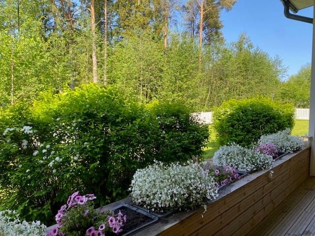 Terassi siistitty viihtyisäksi oleskelutilaksi Karelia Kodin asukkaille.