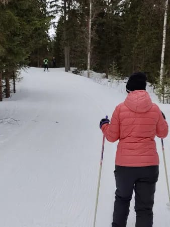 Meillä Kainuussa riittää vielä lunta ja latuja. Talosta löytyy innokkaita hiihtäjiä, niin asukkaista, kuin ohjaajista.