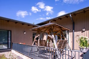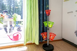 Tunnelmaa nostattaa myös viihtyisä piha-alue, jossa voi ulkoilla turvallisesti laatoitettuja polkuja pitkin tai nauttia säästä istuen pihakeinussa. Pikkutikan pihalla kasvaa omenapuita ja marjapensaita, joita hoidetaan yhdessä asukkaiden kanssa.